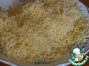 Сверху лука насыпать 1/3 сыра. Повторить слои еще 1 раз.