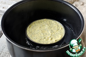 В чашу мультиварки влить теплую воду и поставить в нее форму с тестом. -