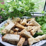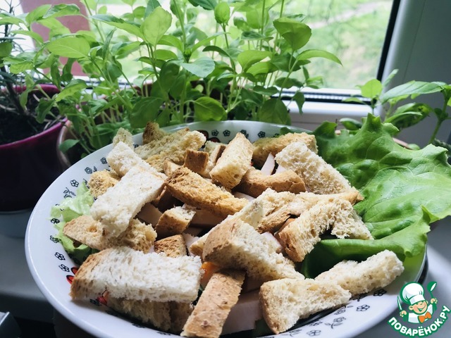 В конце посыпаем салат сухариками.