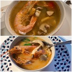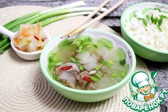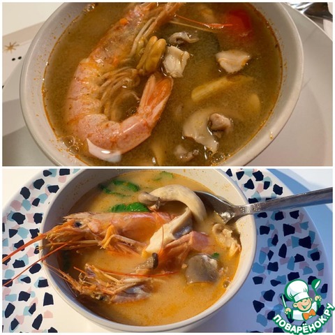 Выложить в суп грибы и креветки и варить еще 5 минут. Украсить зеленью.