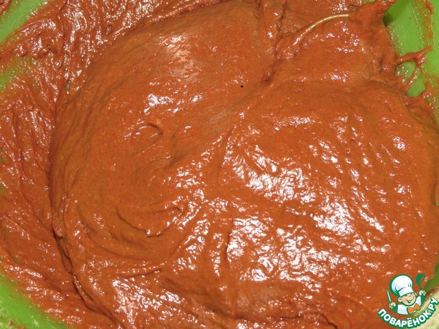 Добавить жидкие. Всё быстро перемешать. Если смесь покажется слишком густой, добавить еще немного горячей воды.