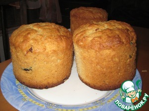 Я пекла эти куличи в прошлом году и украсила шоколадной глазурью. Сегодня же я пеку куличи с изюмом. И буду украшать их взбитым белком или сахарной глазурью.