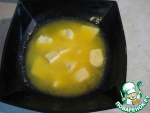 Маргарин размягчить, можно даже слегка подогреть в микроволновке (чтобы он слегка потек, но кусочки остались).