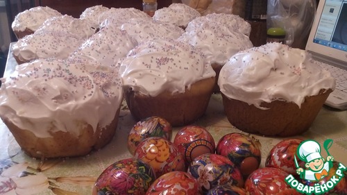 случайно на 3 противне куличей. А рецепт ОТЛИЧНЫЙ. У меня даже свекровь его взяла на вооружение. СПАСИБО ОГРОМНОЕ!!!!!!!!!!