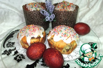 Разложите тесто в смазанные маслом формы на 3/4. Тесто поднимется, его не нужно смазывать яйцом, ставим в разогретую до 180 градусов духовку и выпекаем минут 15-20.