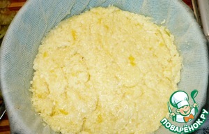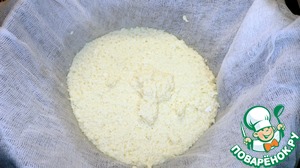 Ждем, когда стечет сыворотка. Я вот так подвешиваю для ускорения процесса.