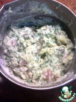 Рецепт «Слоеные пирожки с лососем, укропом и картофелем»: