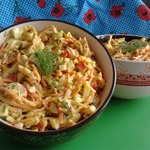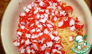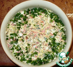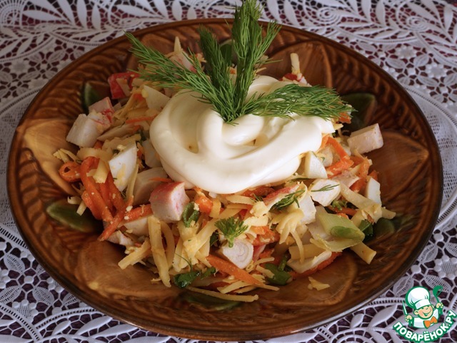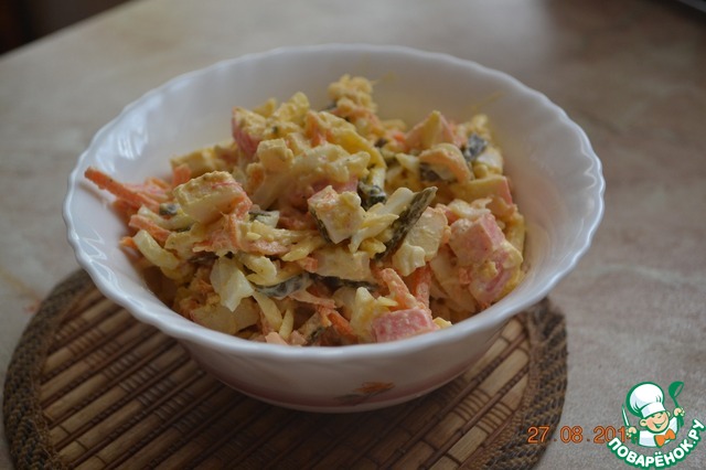 Я к вам опять с салатиком :) Грешна, люблю их :)) Очередной салат с крабовыми палочками, но без риса и кукурузы. Вкусно, быстро, легко!