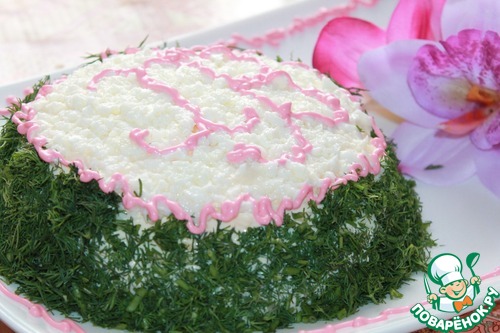 Готовлю этот салатик давно. Но, рецепт выкладываю с приготовленного мной на Великую Пасху, откуда и его украшение. Раньше никак этот салат не называла, но, в этот праздник название пришло само собой. Божена - женское славянское имя. Обозначает "божья", "благословенная" или "богом одаренная". Пусть этот салатик придется Вам по душе. Набор продуктов стандартен, но есть некоторые секретики в его приготовлении.