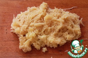 Теперь все ингредиенты укладываем в салатник слоями. Вы можете использовать любую форму для своего салата. Не старайтесь делать его идеально ровным. Он будет смотреться намного естественнее. Теперь маленькая хитрость. Картофель мы смешиваем с майонезом и чесноком и только после этого укладываем на тарелку. Так будет очень вкусно. Можете даже попробовать когда перемешаете.