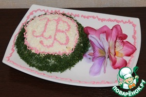 Все наш салат готов. Украшаем его по желанию. У меня на праздник Великой Пасхи он украшен так.