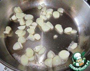 • Растопить 1 ст. л. смальца в глубокой сковородке, добавить крупно порезанный чеснок, обжарить до мягкости.