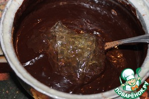 Остудить до 80 градусов, добавить какао и набухший желатин. И остудить до 30 градусов. Глазурь готова