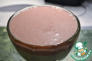 Получившуюся массу слегка взбиваем в глубокой миске и половину смешиваем с низкокалорийным джемом D`arbo.