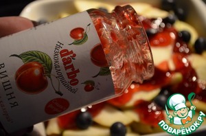 На фрукты выкладываем тонким слоем вишнёвый джем от D`arbo.