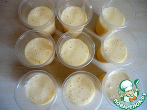 Разлить по формочкам и отправить в заморозку. Если нет формочек, можно воспользоваться 100мл. стаканчиками.