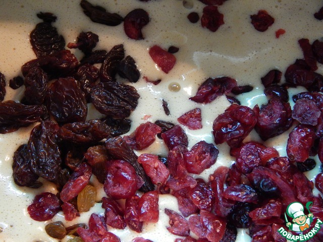 Добавить в опару, перемешать. Постепенно, перемешивая тесто, добавить в него ром, вино, растопленное масло.