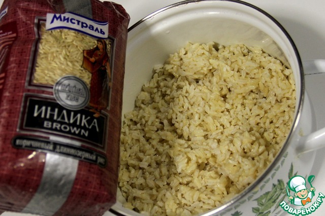 В это время готовим коричневый рис. Или его можно приготовить заранее. Рис я готовлю вот по этому рецепту http://www.povarenok .ru/recipes/show/628 81/