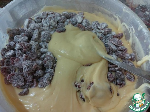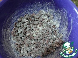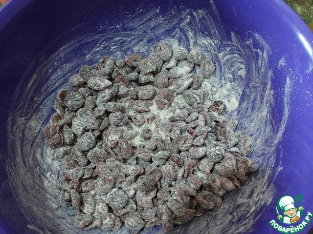 Клюкву смешиваем с небольшим кол-вом муки (чтобы они в дальнейшем равномерно распределились)