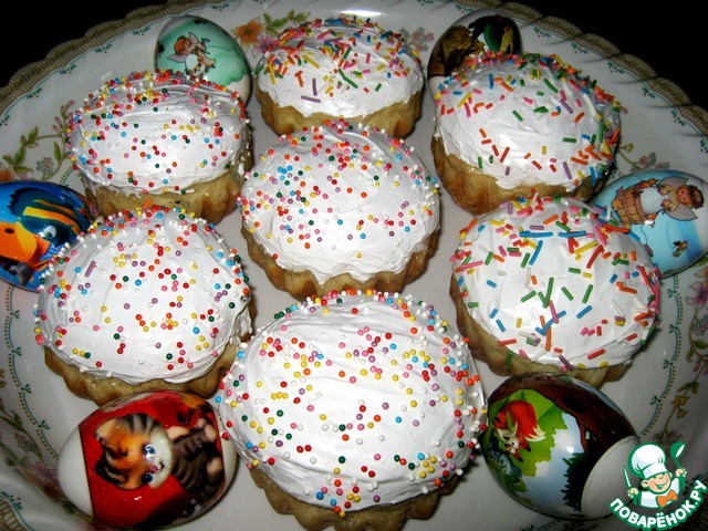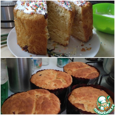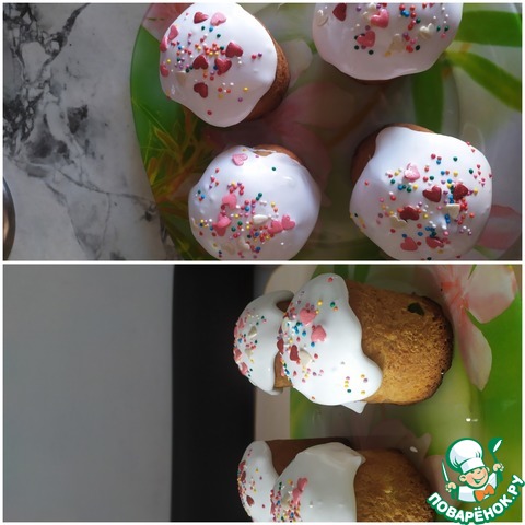Вкус у этих куличей замечательный, ароматный, понравились всем без исключения, кого ими угощала. Может и вам пригодится такой рецептик. -