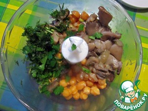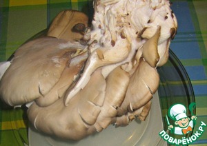 Грибы, я взяла вешенки, помыть, порезать и обжарить на растительном масле с луком.