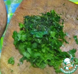 Зелень, я брала укроп и петрушку, мелко (или не мелко, как вам угодно) нарезать.