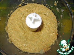 Измельчаем все до однородности, после чего добавляем яйцо и перемешиваем.