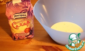 4. Масло растопить, добавить в него сахар и яйца, хорошо размешать.