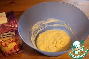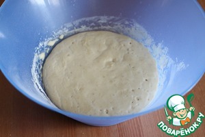 2. Добавить половину муки, замесить и поставить тесто подходить на 40-50 минут.