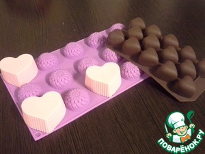 Затем достаем и раскладываем начинки. Сверху заливаем шоколадом и убираем еще на 20 минут в морозилку. Аккуратно выворачиваем формочки и достаем наши конфетки.