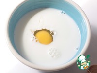 Соединим молоко и яйцо. Взболтаем вилкой до однородного состояния. |