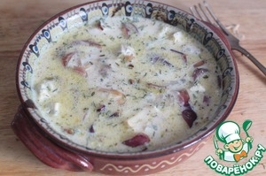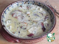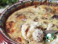 Зальем молочно-сырной заливкой и отправим в духовку еще на 15 минту, снизив температуру до 170 градусов. |