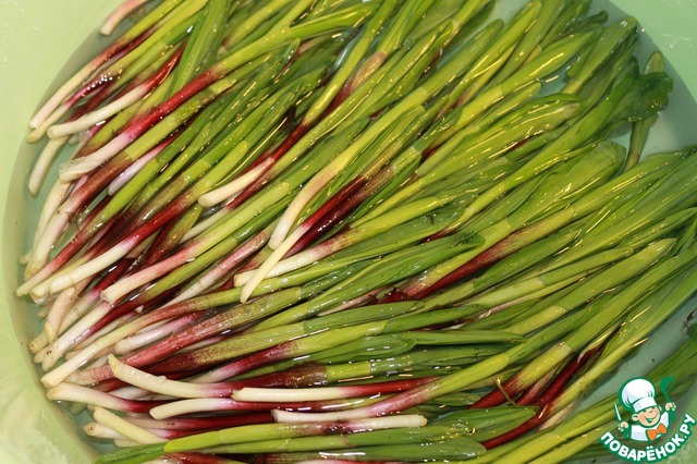 Черемшу залить холодной водой на 5-10 минут. Очистить, промыть под проточной водой.