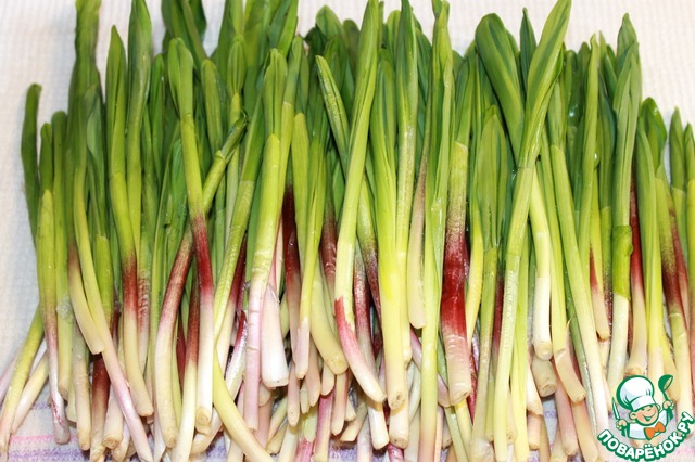 • Черемшу залить холодной водой на 5-10 минут. Очистить, промыть под проточной водой.