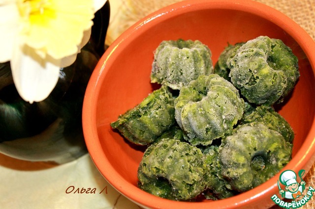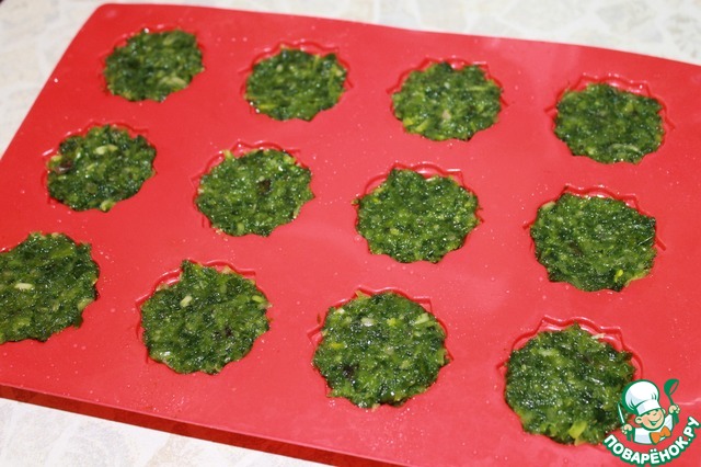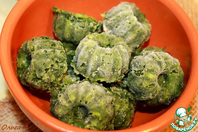 Получившееся пюре разложить по силиконовым порционным формочкам и заморозить.