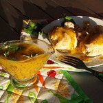 Когда были в германии, меня поразило то, как легко немцы используют фрукты в мясных блюдах. Это оказалось непривычно, но очень вкусно. Вот и родилась у меня идея подавать к мясу фруктовые соусы. Теперь это моя фишка.