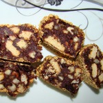 [+4]Очень выручает после Пасхи, когда остается много сладостей и много "лома печенья". Орехи добавила разные (грецкие, фундук и миндаль), обваляла колбаски в крошке от медовика (можно еще в какао, крошке ореховой, от печенья, кокосовой стружке).