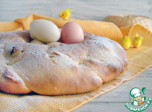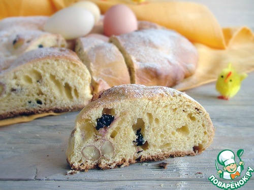 Такой сладкий хлеб традиционно пекут в Болгарии к празднику Пасхи. Получается быстро и вкусно. Рецепт найден в журнале Лиза. Предлагается вашему вниманию с небольшими личными корректировками.