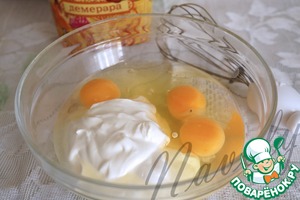 Тем временем смешиваем сметану с яйцами. Не забываем следить за молоком ))
