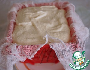 Выложить все это в пасочницу, которую предварительно выстелить марлей. поставить в холодильник часов на 10-12.