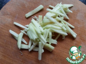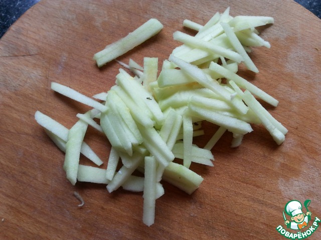 Яблоко очистить, порезать тонкой соломкой. Сбрызнуть лимонным соком.