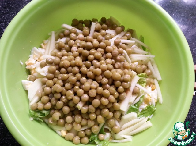 - Горошек зеленый — 1/2 бан.