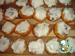 Половинки абрикос начинила творожной массой.