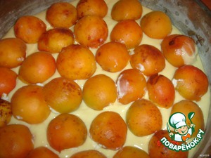 Сверху выложить половинки абрикосок.