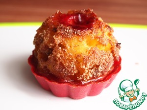 Затем ананас положить в формочку, в которой будем запекать. В середину ананаса добавить вишневый конфитюр d'arbo.