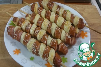 Очень мне понравилось! Можно делать с любой начинкой. Берем слоеное тесто, раскатываем, смазываем майонезом, кладем мелко порезанное любое мясо, зелень, тертый сыр. Сворачиваем рулет, режем на кусочки и выкладываем на противень! Через 15 мин. очень вкусная закуска готова!