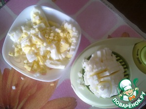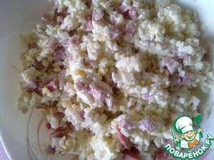 Приготовленные ингредиенты соедините между собой, добавьте майонез, соль и перец ( по вкусу). Все хорошо перемешайте.