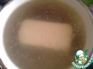 Целый кусочек сыра положите на 20 минут в горячую воду.