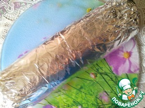 Плотно сверните рулетом. Заверните в фольгу (как конфетку) и на 2 часа положите в холодильник.