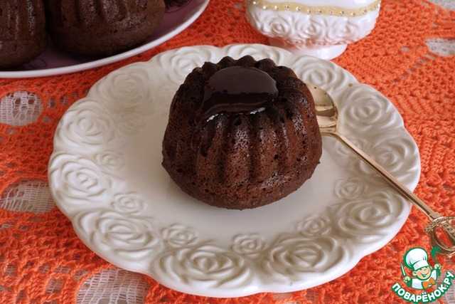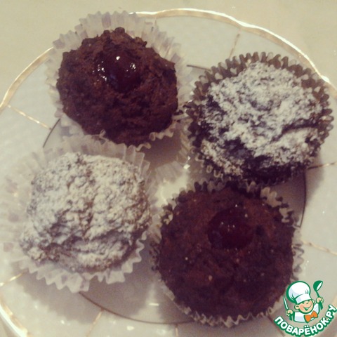 Рецепт «Полезные шоколадные маффины с вишневым конфитюром»: